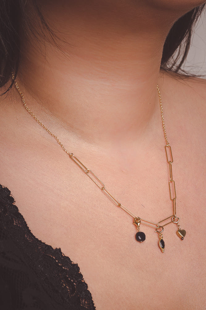 Clip tige composé d’une pierre de Soleil, d’une perle d’eau douce ainsi que d’une perlé doré en or Laminé..